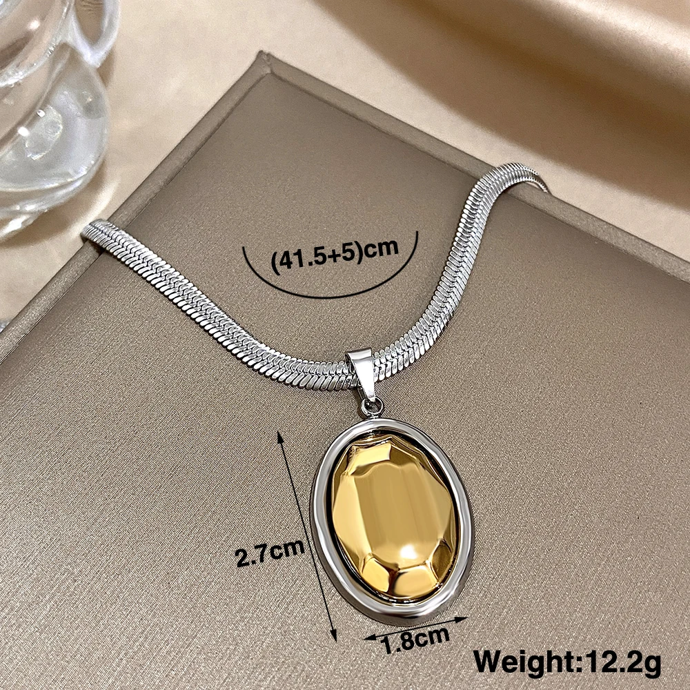 اسم المنتج : قلادة هندسية بيضاوية مكتنزة للنساء – موديل فضي - ذهبي عصري ، سلسلة من الفولاذ المقاوم للصدأ للمناسبات و الحفلات