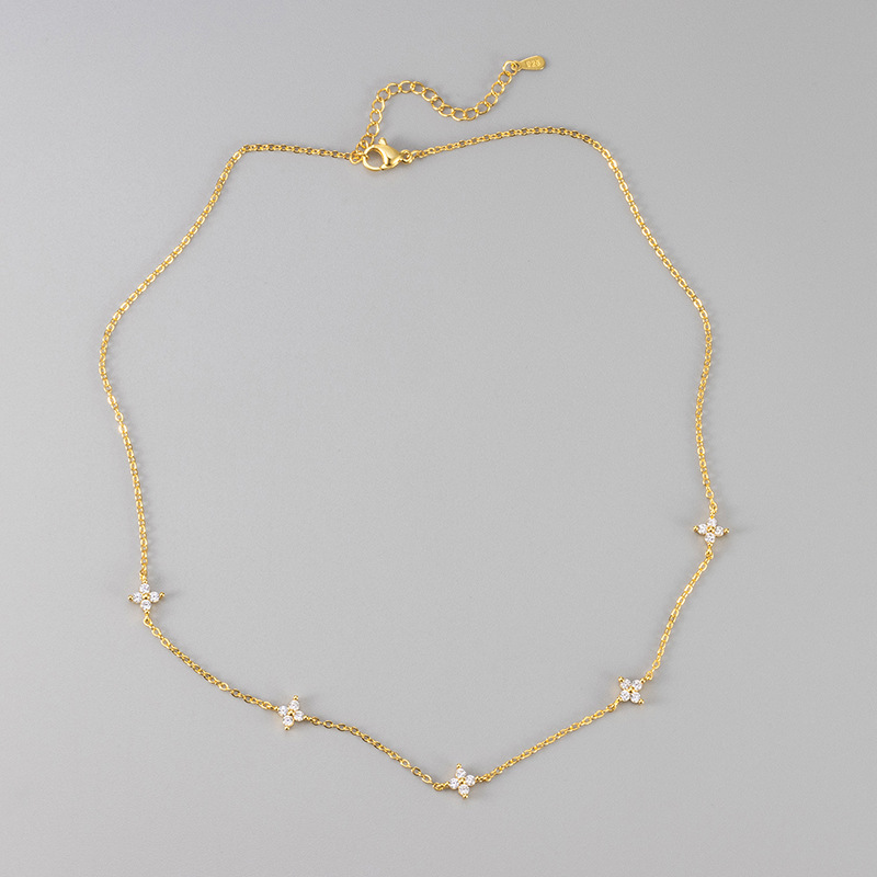 جديد الفولاذ المقاوم للصدأ الزركون القلائد للنساء 18K مطلية بالذهب أربع أوراق العشب طوق سلسلة قلادة مجوهرات فاخرة هدية