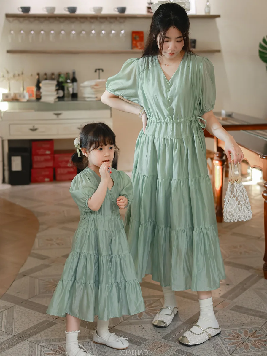 👗 فساتين أم وابنة متطابقة تعزز روح الحب والانسجام العائلي🌿 لون أبيض وأخضر صيفي يمنح إطلالة منعشة وأنيقة ☁️ خامة قطنية ناعمة وخفيفة لراحة فائقة في الطقس الحار 👕 أكمام قصيرة وتصميم يومي عملي مناسب للاستخدام اليومي والمناسبات 📏 مقاس مطابق تمامًا للمقاس المعتاد 👨👩👧 مثالي للرحلات، العطلات العائلية، جلسات التصوير، والأعياد