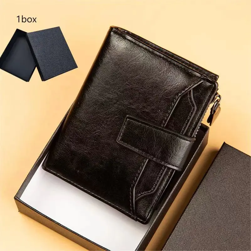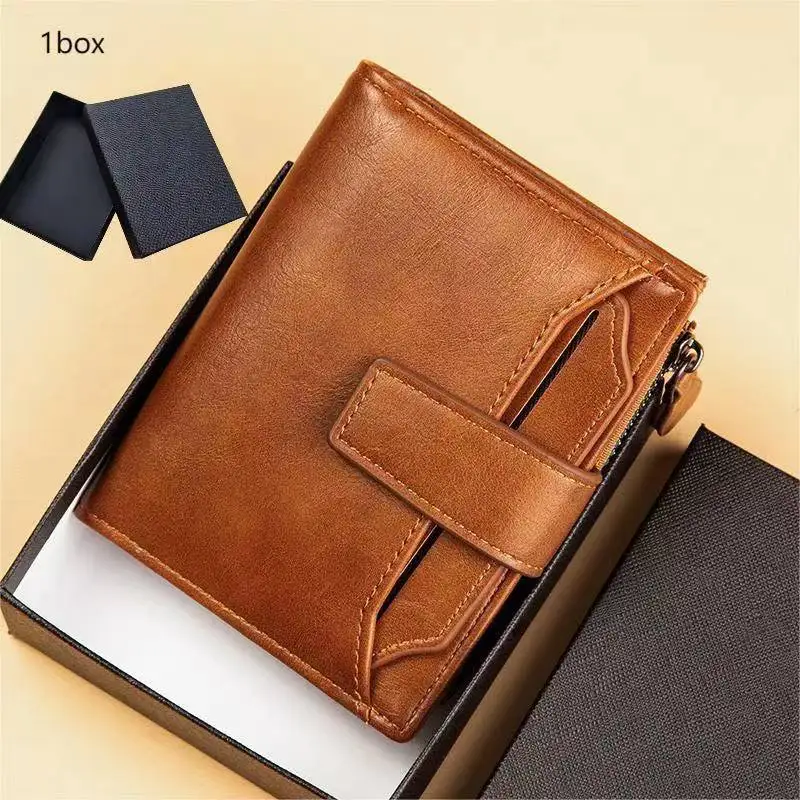 اسم المنتج : محفظة رجالية جلدية جديدة قصيرة عتيقة متعددة البطاقات من جلد البولي يوريثان هدية صندوق هدايا